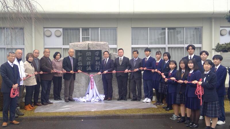 12月15日、あいにくの雨となりましたが、同窓会より贈られた校訓碑の除幕式が行われました。同窓会長からは、「校名が変わって寂しいことではあるが、和衷協同の校訓が残り、生徒の皆さんにその精神が受け継がれることを祈っている」というエールが送られました。生徒たちは、校訓碑のもと、今後ますます成長していくことと思います。